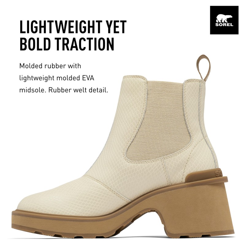 Sorel Women's Hi-Line Heel Chelsea Boots - Bleached Ceramic, Caribou Buff - Size 9.5