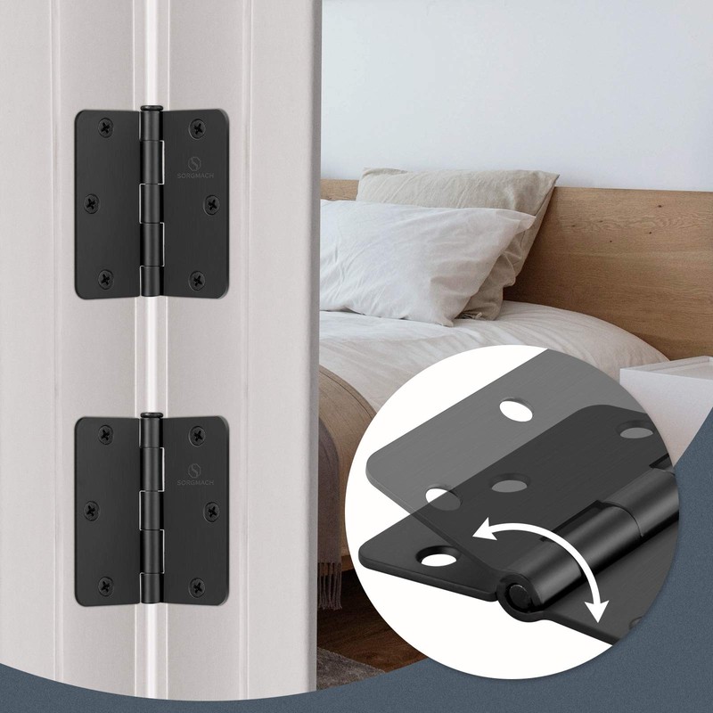 SORGMACH Door Hinges 3 1/2 Inch Matte Black 3.5 Inch Interior Hinges 1/4" Radius Iron Hinge 3 ½"x 3 ½" Door Hardware - 30 Pack