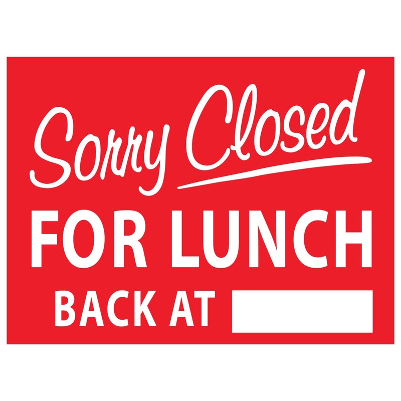Sorry Closed For Lunch Back At Sign Metal Tin Sign 12x16 Inches