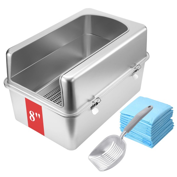 Sorstrem 8" Sifting Cat Litter Box with Lid Stainless Steel