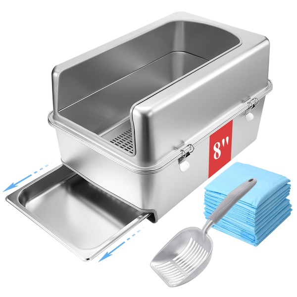 Sorstrem 8" Sifting Pull-Out Cat Litter Box with Lid for Pine Pellets