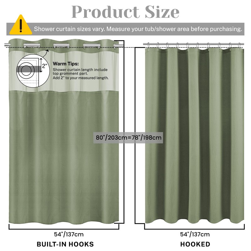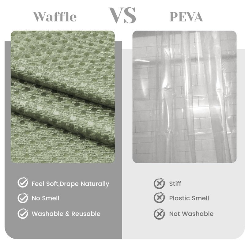 - 【Hotel Style】: The outer layer of this no hook waffle shower curtain can absorb water well and keep dry, and it comes with a snap liner set to create a hotel-style bathroom. The waffle texture, delicate and rich in texture, injects a stylish atmosphere into the bathroom.