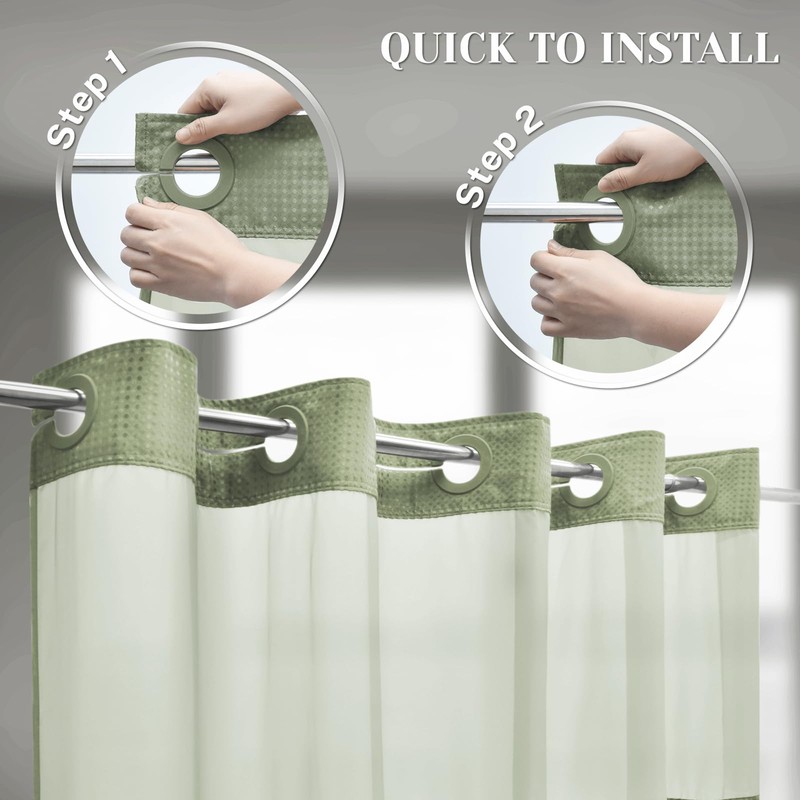 SORTTO No Hook Shower Curtain with Snap in Liner Set Waffle Shower Curtain for Bathroom Hotel Style Fabric Waterproof Inner Liner,54" W x 80" H, Green