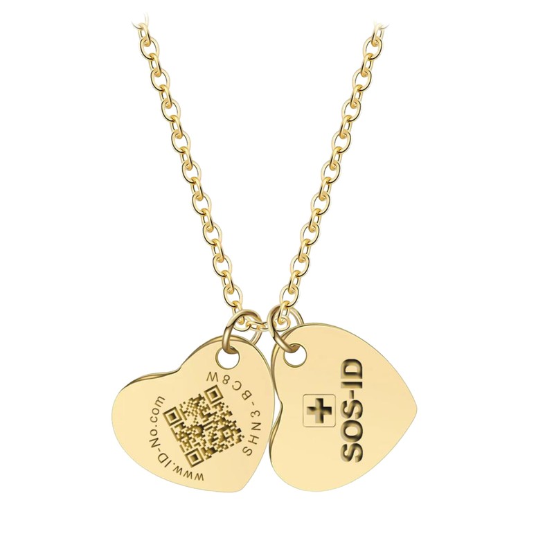 SOS ID Chain Twin Hearts - Emergency Pendant with QR Code - Heart Medical Alert Passport - Instant Reveal Health Data - Elegant Jewellery for Safety
