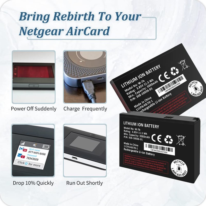 • 🌠【Compatible Model】replacement battery for Netgear AirCard 779S 780S 790S 790SP 810S 4G LTE Mobile Hotspot, Model No: W-7B(Please verify your old battery part number and model before purchasing this replacement battery.)