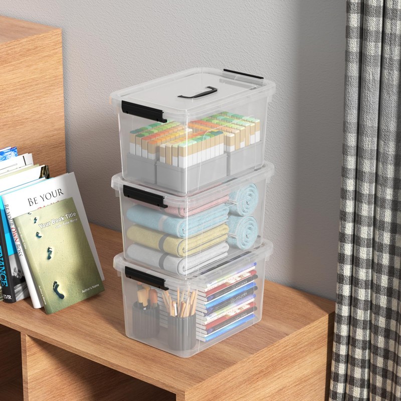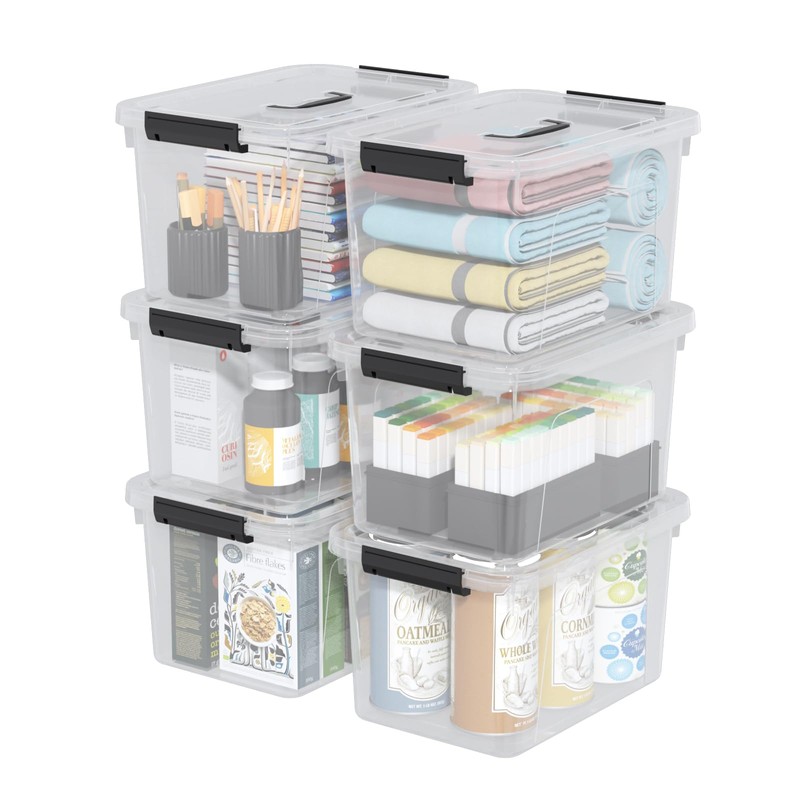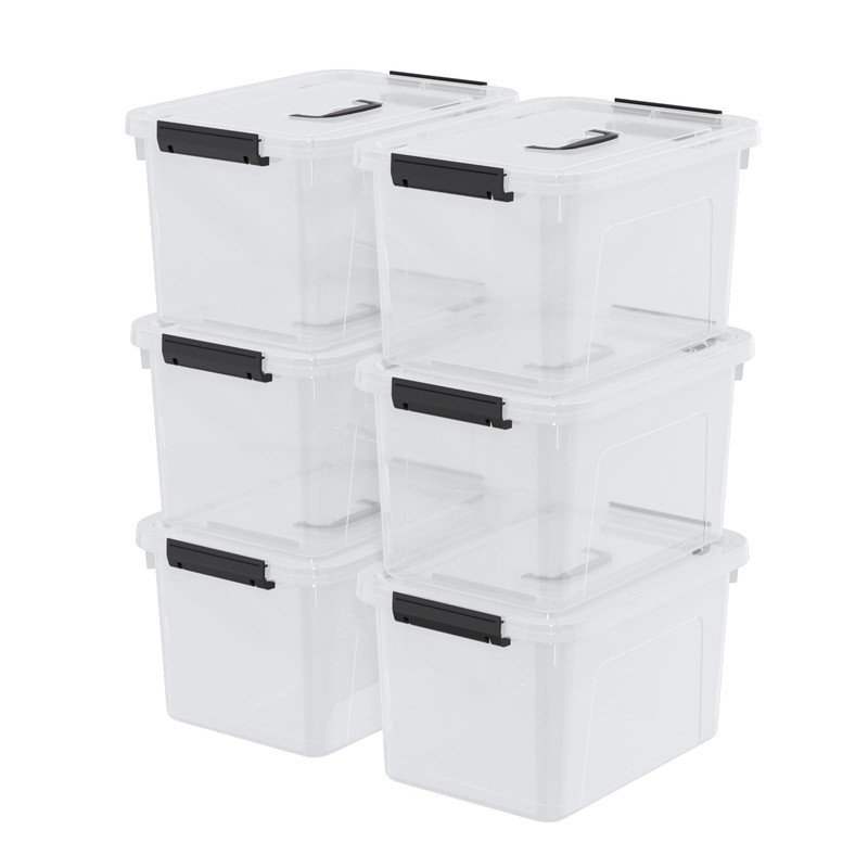 Sosody 6 Quart Plastic Storage Bins with Handles, Small Clear Lidded Storage Bins, 6 Packs