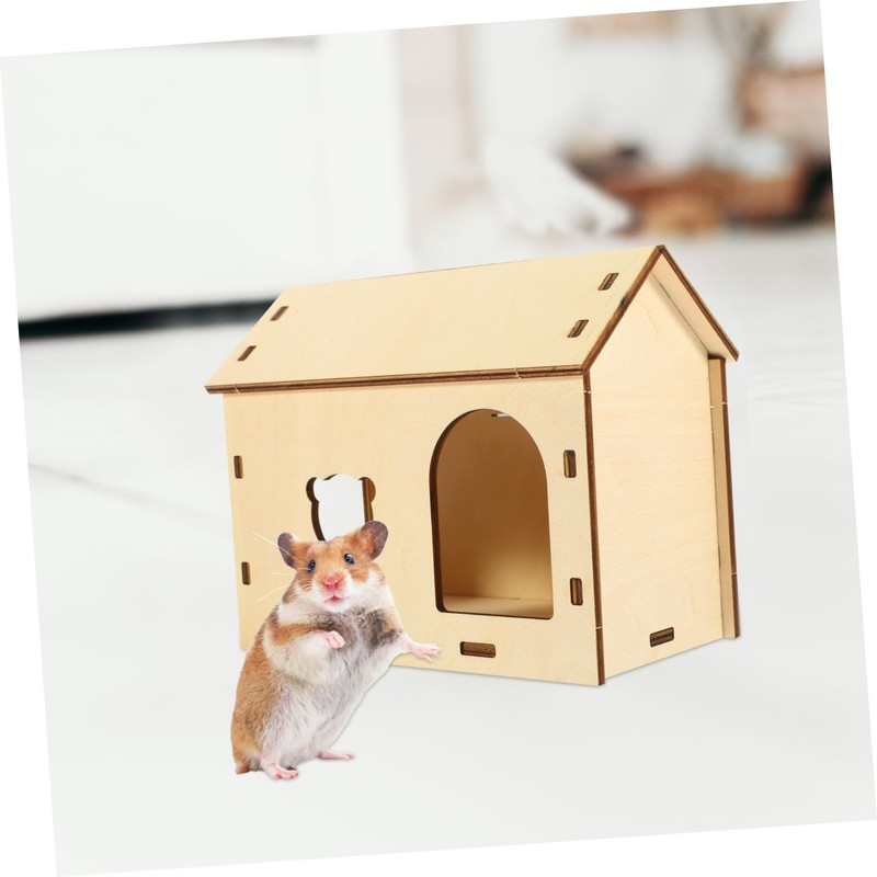 - Not only can pets use the house as a resting habitat in which to store food, but also as a hiding place for entertainment and play wood hamster house.