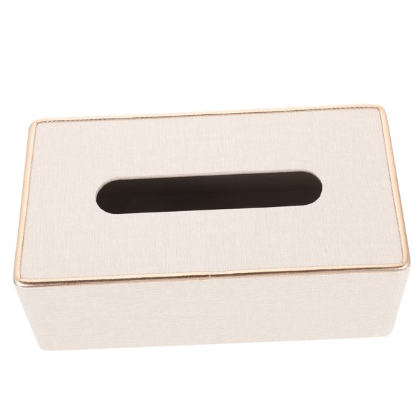 Sosoport Rectangular Household Tissue Storage Box with Premium PU Leather Texture Napkin Holder for Home Office Hotel and Restaurant Use Convenient Extraction Design Pattern with Gold Trim