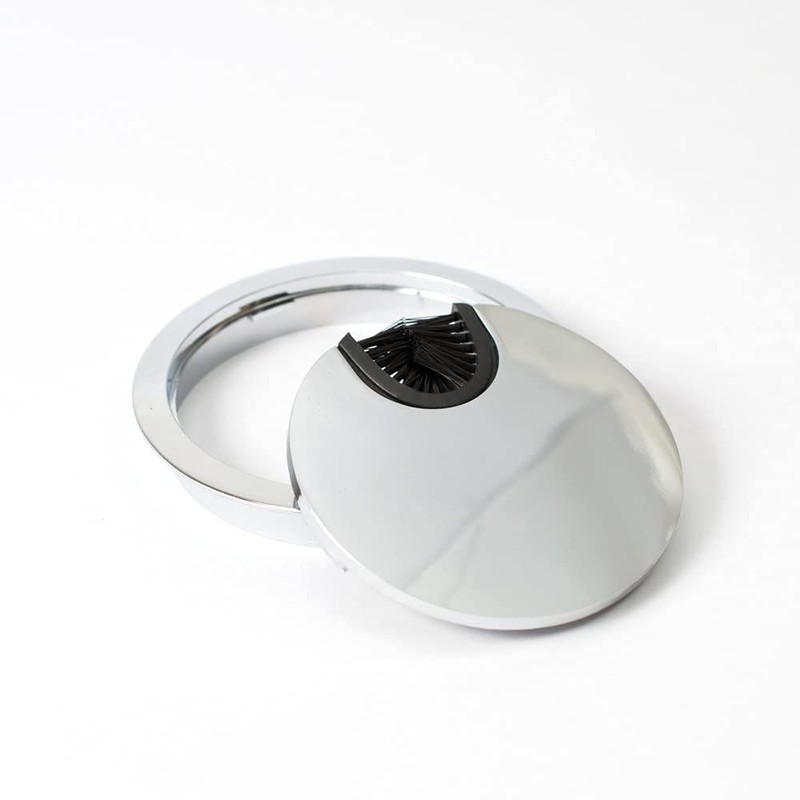 sossai® KDM1-CH Cable Grommet/Desk Duct with Brush for Desks, Office & Worktops, Pack of 2, Design: Chrome, Diameter: 60 mm, Material: Metal
