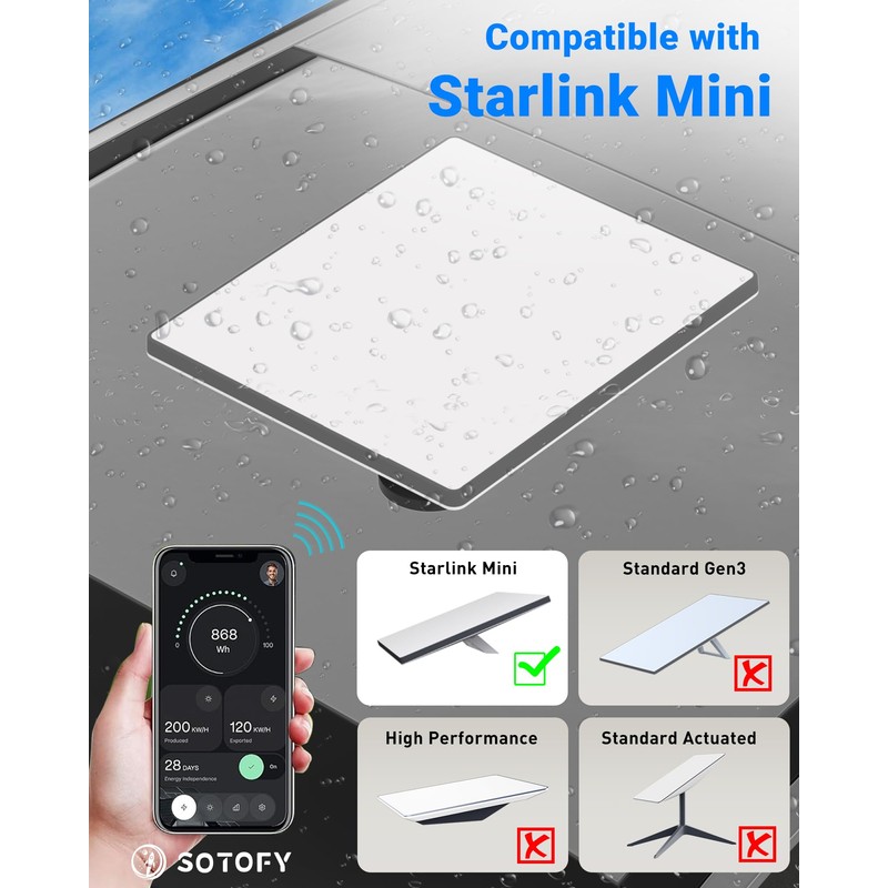 Get ready for reliable, on-the-go satellite internet with the SOTOFY Starlink Mini Magnetic Roof Mount, a high-strength Starlink Mini Car Mount designed for RVs, trucks, vans, boats, and more. Featuring four heavy-duty magnets (65lbs each), this Starlink Mini Mount Magnetic solution delivers a 260lbs vertical pull force, ensuring your Starlink Mini Roof Mount stays securely in place—even at highway speeds or during harsh weather.