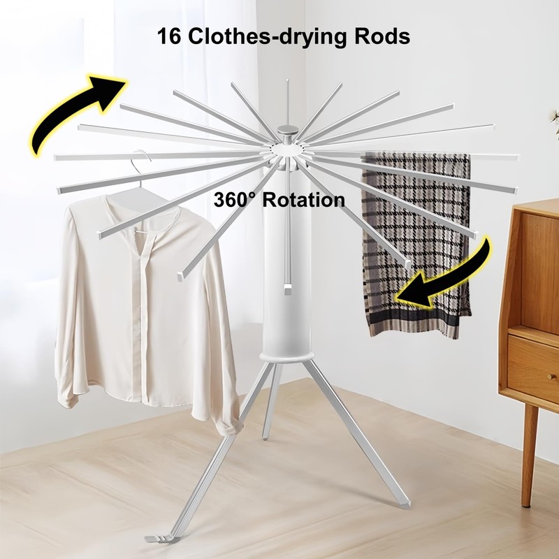 - Extra Large Drying Capacity: With an umbrella-shaped large capacity and 16 drying rods, this rack maximizes drying space while allowing for proper ventilation. You can easily adjust the number of drying poles to meet your specific drying needs.