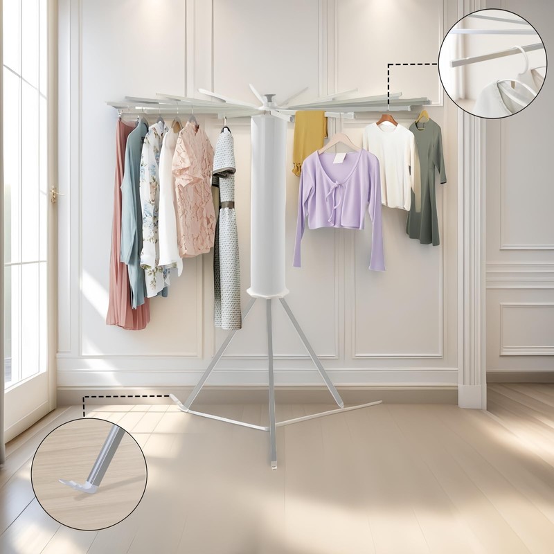 - Stylish & Efficient: The Considerate, Versatile Tripod Clothes Drying Rack is a practical yet stylish must-have for every home; From laying flat for optimal airflow to hanging clothes for efficient drying.