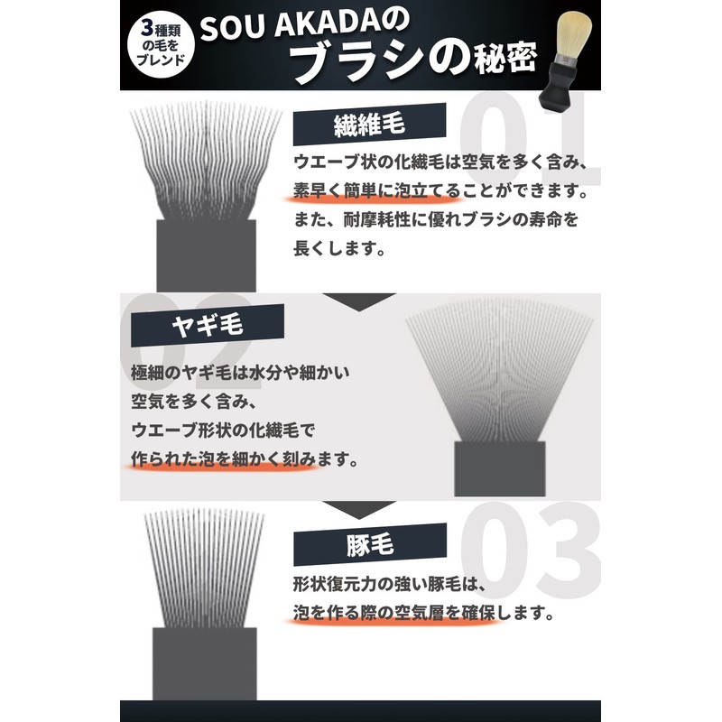 - Ultimate Foaming Performance. Developed by a long-established brand established for 100 years. SOU AKADA Silk Whip Brush with 3 Bristles