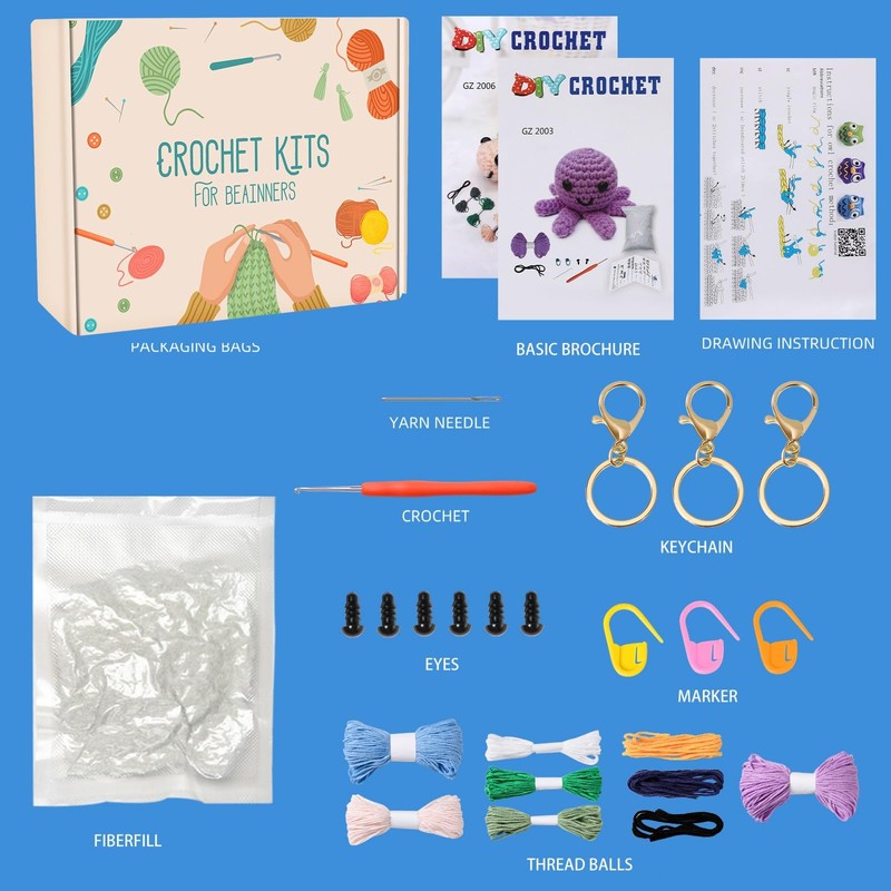 - Creative gift: you can give this complete crochet kit directly to friends, family, children, etc. Or you can finish knitting and make a key ring that you can share with them. It is a great gift for birthdays, Christmas, New Year, Valentine's Day or any other holiday