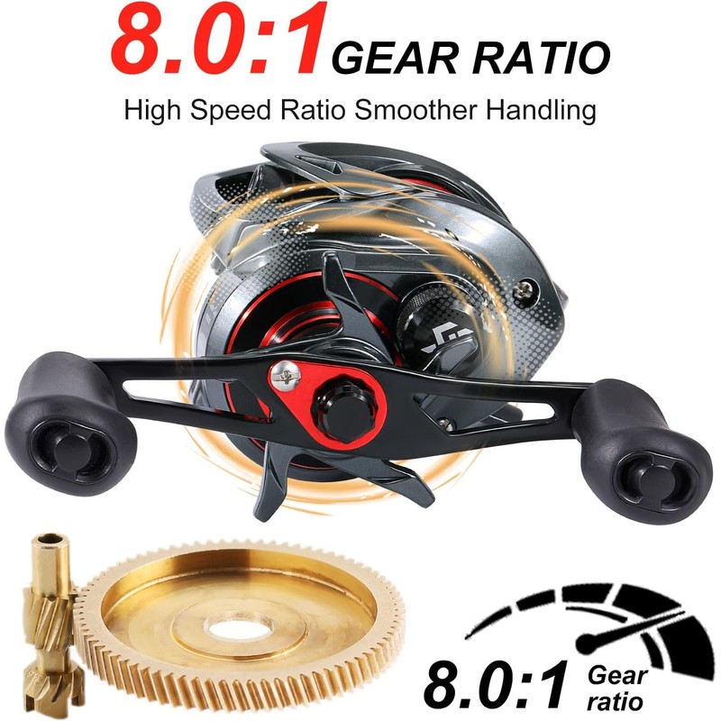 - Smooth Performance – 9 double-shielded stainless steel ball bearings and 1 anti-reverse bearing for smooth performance. Manganese brass main, a 10-magnet brake system and pinion gears with external adjustment make you have a leisure casting day.