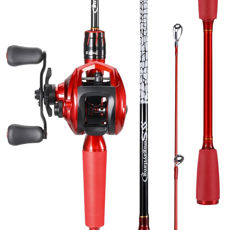 Sougayilang Baitcasting Rod and Reel Combos,5.9 Ft Two Pieces Light Weight Pole with High Speed Smooth Powerful Gear Casting Rod Avaliable for Freshwater Saltwater Great Gifts Left Hand