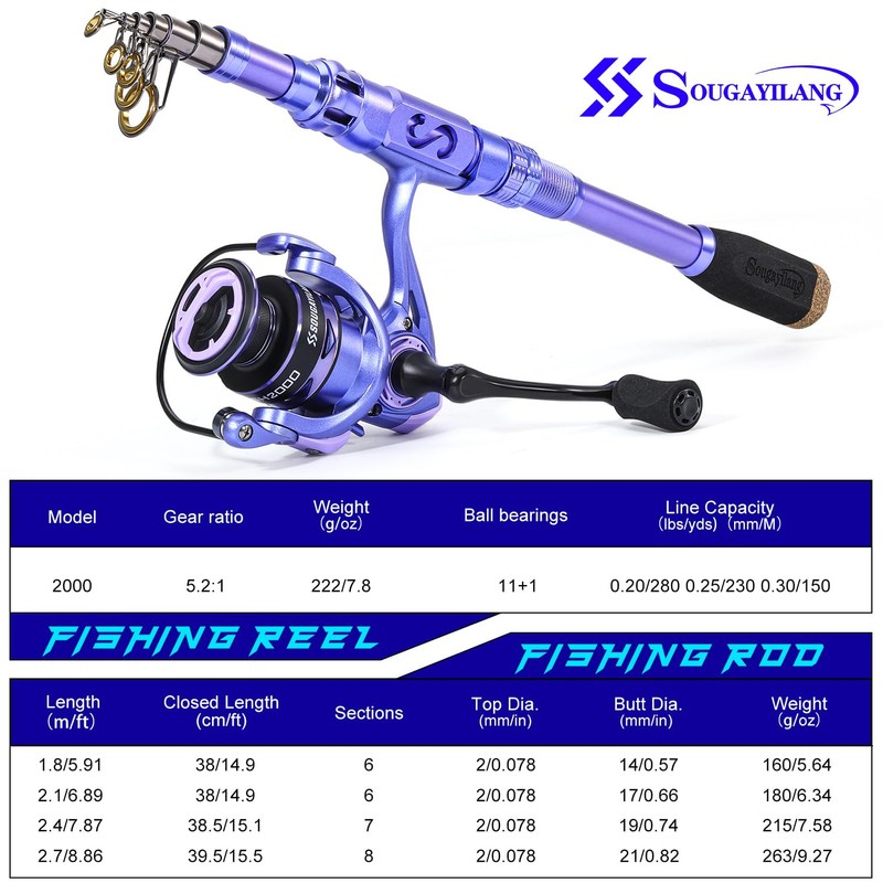 - LIGHTWEIGHT & SENSITIVE RODS - The Sougayilang Telescopic Rod and Reel Combo features a sensitive, lightweight design that provides anglers with great value performance. Durable, the guides are made of ceramic, which is hard and lightweight for better heat dissipation. The collapsible telescopic fishing rod is portable and easy to store.