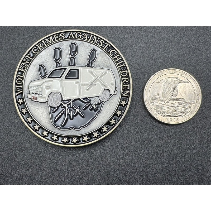 The product is a sought-after New Orleans FBI Violent Crimes Against Children challenge coin, an original item from the United States. This military-themed collectible is a high-demand piece that represents the FBI's specialized unit focused on investigating violent crimes. Challenge coins like this are highly valued by collectors and individuals within the law enforcement and military communities for their unique designs and historical significance. It serves as a symbol of pride and camaraderie among those who have received or traded challenge coins as a token of respect and honor.