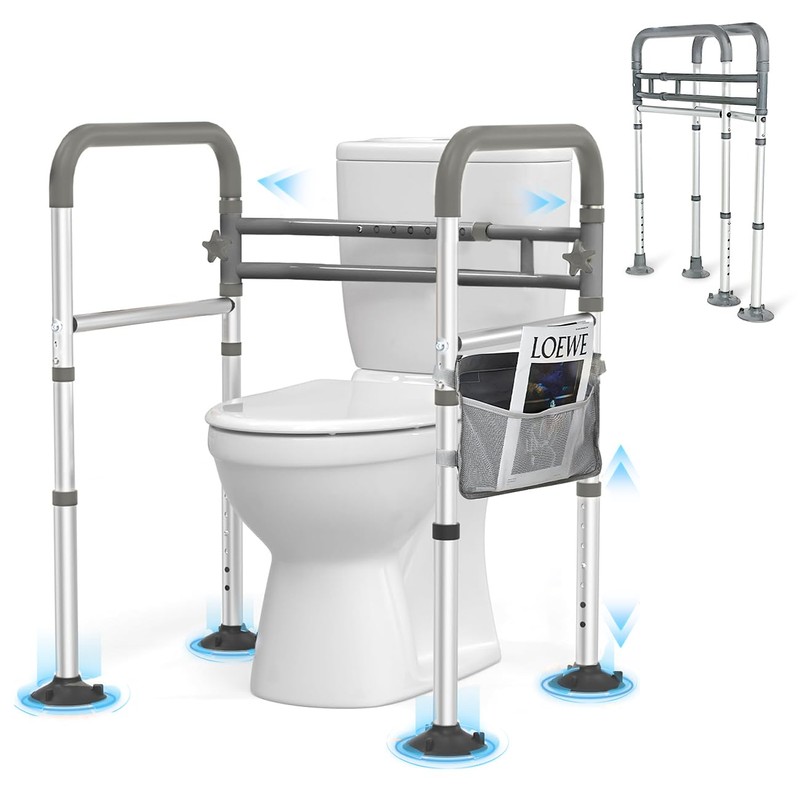 SOUHEILO FSA Eligible Toilet Safety Rails, Adjustable Toilet Rails for Seniors Fit Any Toilets, Stable Toilet Safety Frame Larger Suction Leg, Tool Free Toilet Handles for Disabled/Elderly/Handicap
