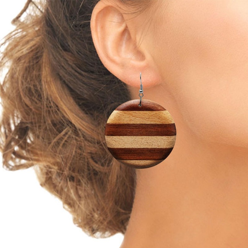 - Lightweight and comfortable to wear: thanks to the light wood and ergonomic shape, the earrings sit comfortably and are barely noticeable even during prolonged wear.