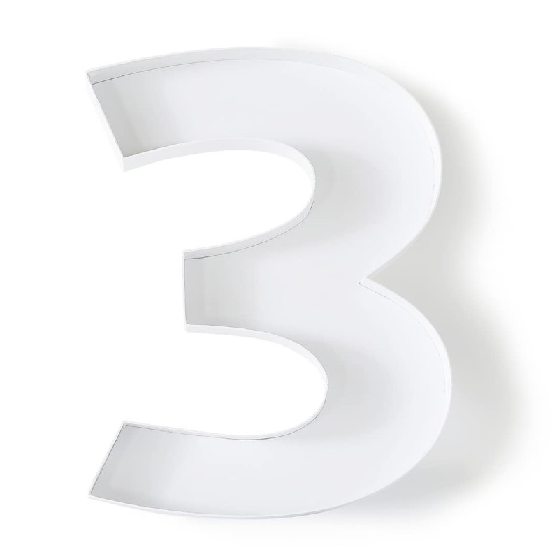 Soul & Lane Fillable Cardboard Number Charcuterie Board Box, Large Paper Mache Numbers Shaped Cutout for Food, White Hollow Gift Tray for Birthday and Party Decor, Number 3