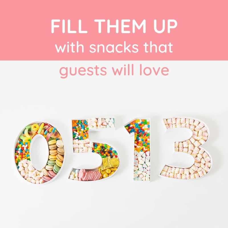 - GREAT DECORATIVE FOOD BOXES FOR FILLING UP WITH TREATS: Spoil your guests with number shaped candy containers overflowing with party treats such as macaroons, gummy bears, chips, and salted nuts. You can even use our mache fillable boxes to hold beautiful flower displays.