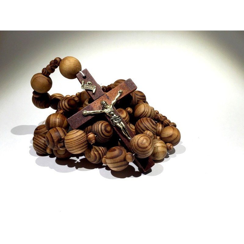 Giant Big Beads Rosario Natural Wood Chain Jesus Cross Xl Large 40" Wall Rosary