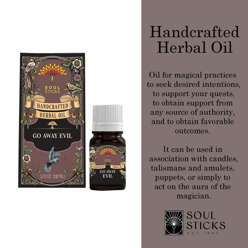 - Go Away Evil Herbal Essential Oil Blend A herbal oil blend specifically handcrafted to help protect you from "evil". Good for banishing evil spirits.