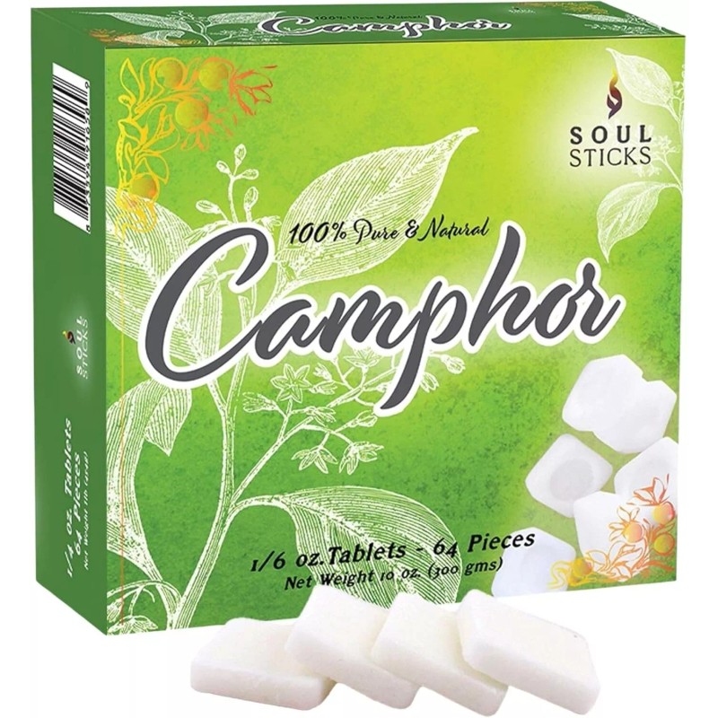SOUL STICKS Natural Camphor Blocks Pure Camphor Tablets for Aromatherapy & Puja - 64 Tablets (300 Grams)