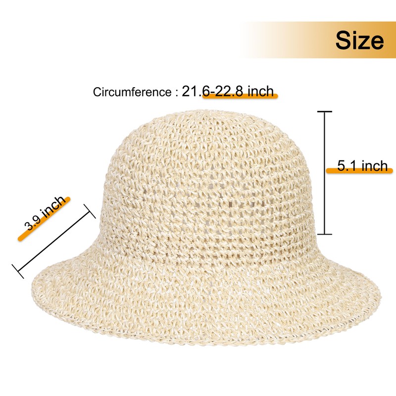 - MATERIAL:Straw bucket hat is made of high quality nature paper straw,Very soft,Breathable and Lightweight,Can be foldable and roll up