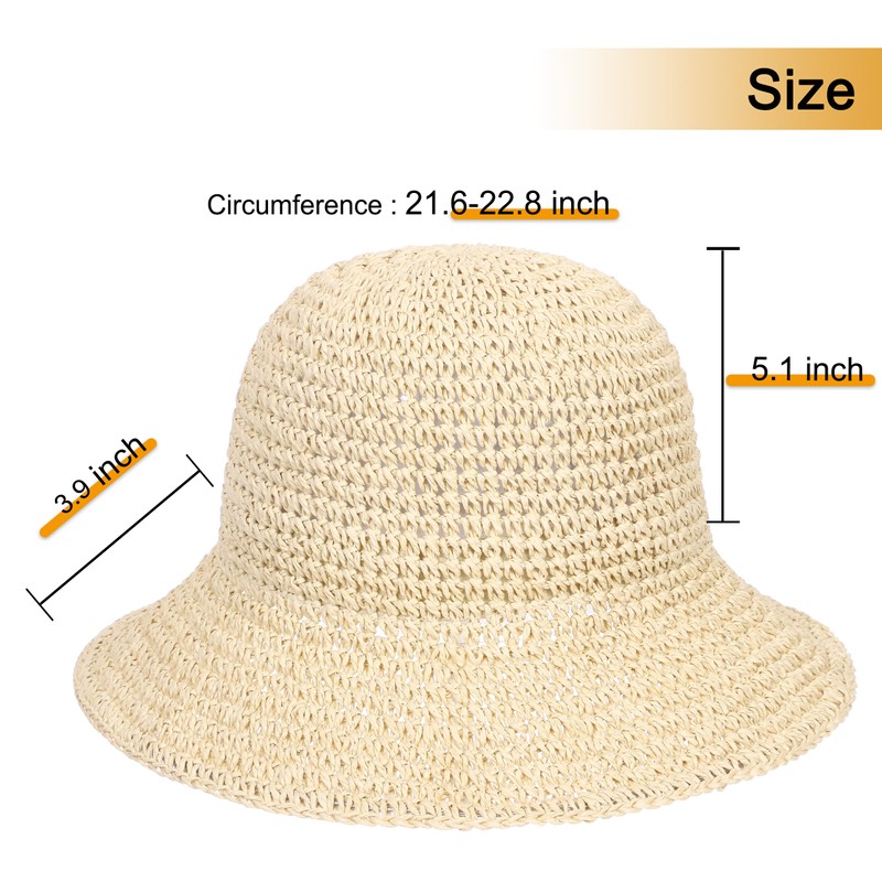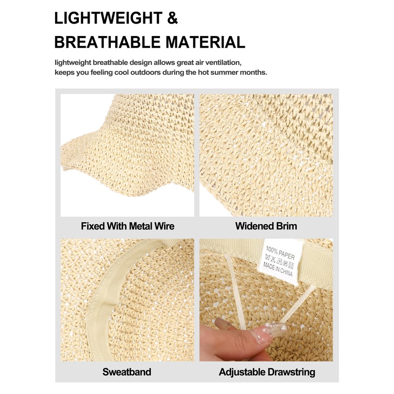 - MATERIAL:Straw bucket hat is made of high quality nature paper straw,Very soft,Breathable and Lightweight,Can be foldable and roll up