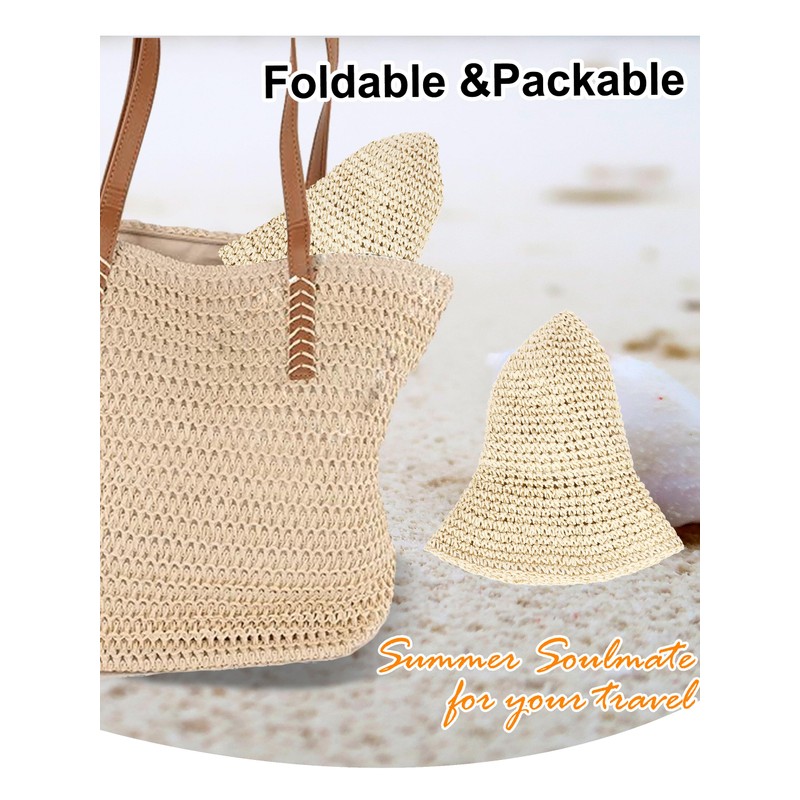 soul young Womens Straw Sun Hat Wide Brim Hand Woven Foldable Beach Bucket Hat for Summer Travel UV Protection UPF 50+(One Size,Beige)