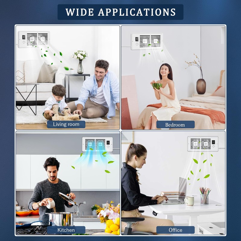- Energy-Saving Design – Display sleeps after 1 minute idle; resumes instantly with any button press (AC powered booster fan vent 4x10)