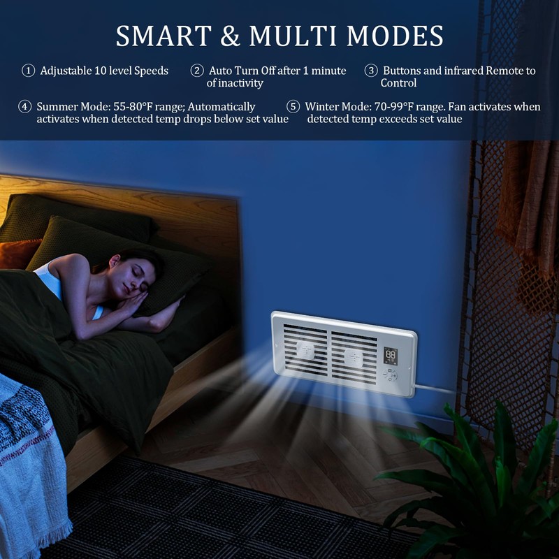 - Dual Control Convenience - Deliver high airflow to effectively boost airflow from registers, Operate via touch-sensitive panel or included IR Remote, Ideal for bedrooms, basements, or any space needing improved airflow