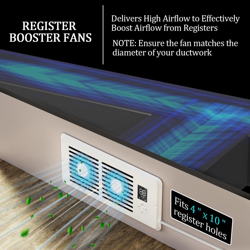 - Universal Compatibility – Fits standard 4"x10" floor/wall vents; boosts airflow for any HVAC system; Note: Ensure the fan matches the diameter of your ductwork
