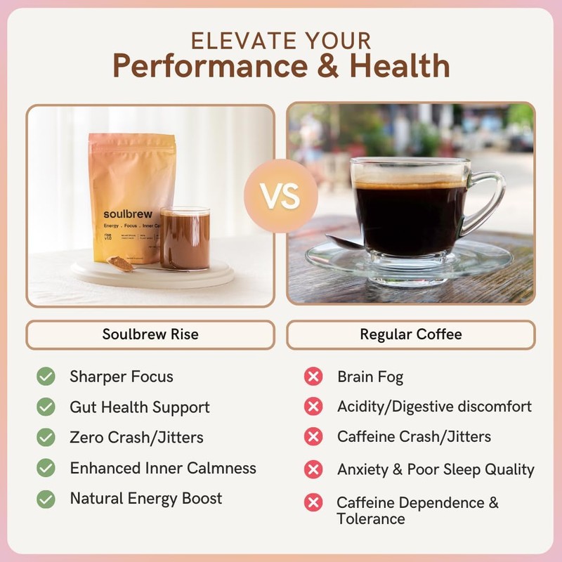 SoulBrew Rise Mushroom Coffee Alternative – Energy & Focus-Boosting Nootropic...