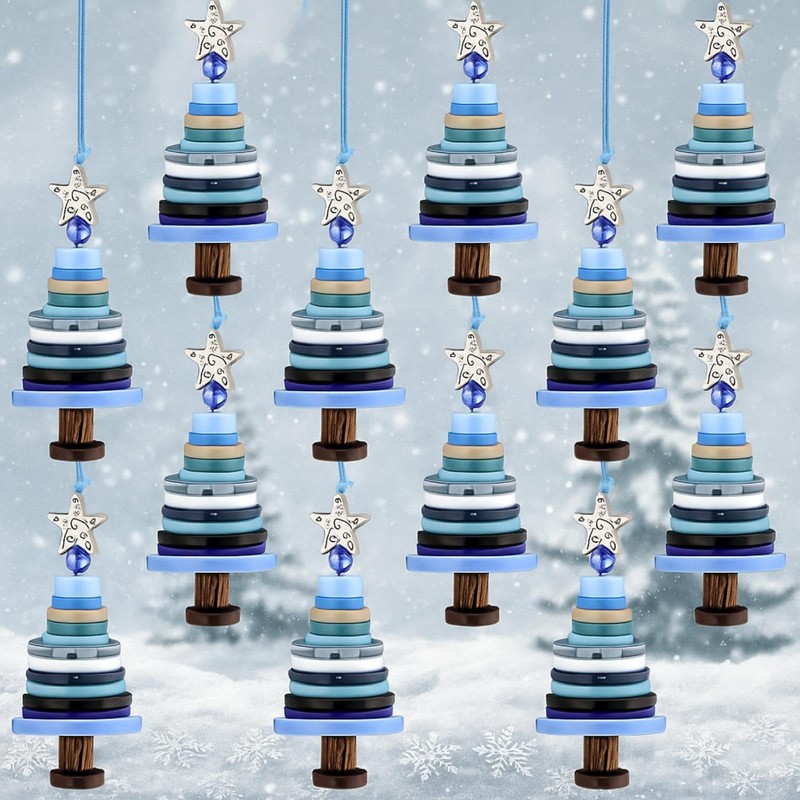 - Package Contents: you will receive 12 sets of button Christmas tree craft kits; These ornaments, created by stacking buttons, cleverly blend traditional and modern styles to create a playful holiday atmosphere
