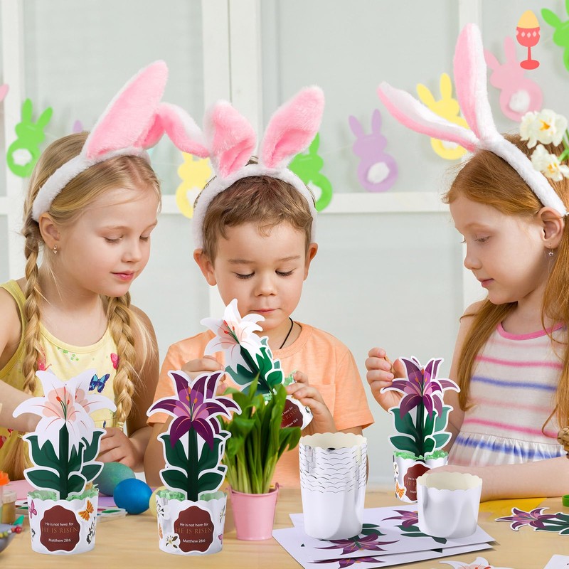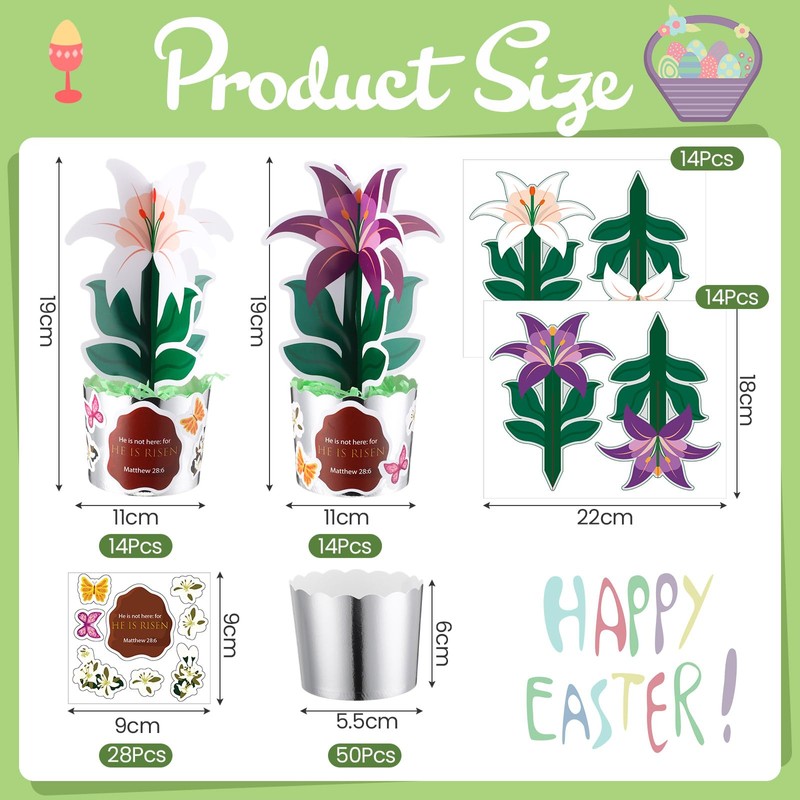 • Easter Crafts: includes 28 lily cards, 28 stickers, and 50 paper flower pots; Mix and match them to create stunning lily Easter decorations diorama kits ; These charming crafts not only infuse your space with the Easter spirit but also let you enjoy the joy of DIY