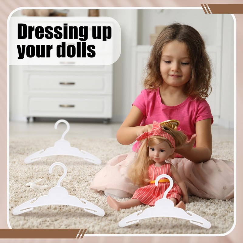 - Vibrant Organization Made Easy: transform your doll's wardrobe into a colorful and efficient space with our 50 white doll clothes hangers; Not only do these hangers help you keep everything neatly organized, but they also add a dash of personality to your collection; Say goodbye to clutter and hello to a streamlined, vibrant wardrobe that boosts your organizational efficiency