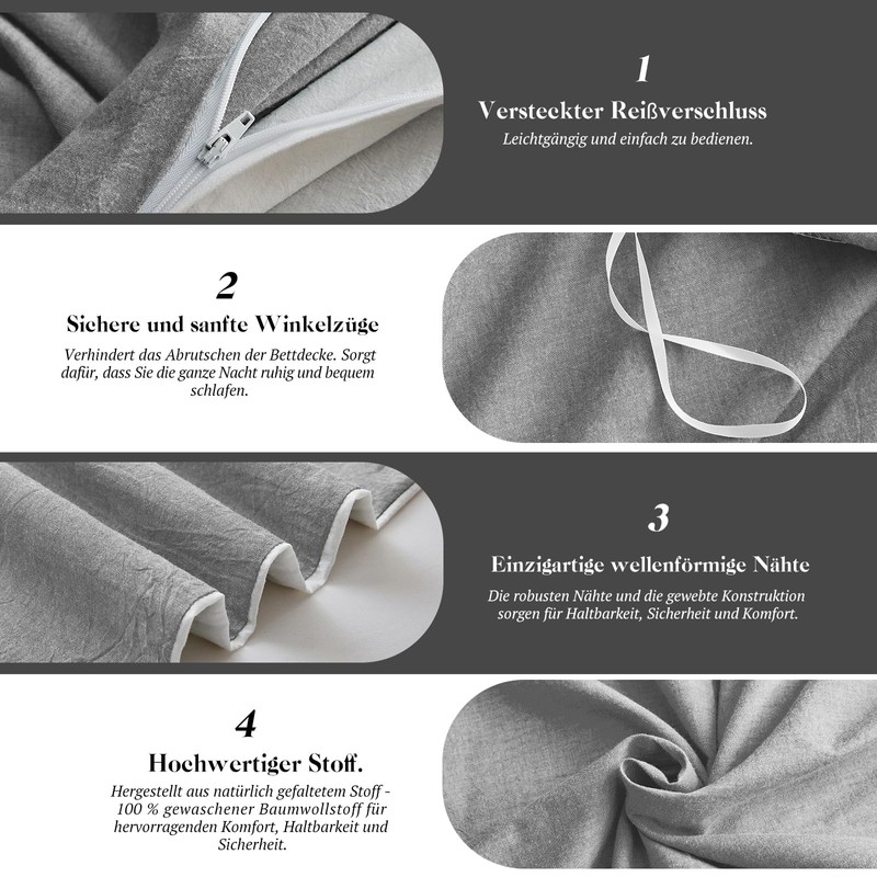 - Natural design: This duvet cover is made of 100% washed cotton, the fabric has been processed using a special procedure and the surface of the fabric has a slight natural crinkle feel. The crinkle finish provides a casual vintage look. Maintains crinkle texture without ironing.