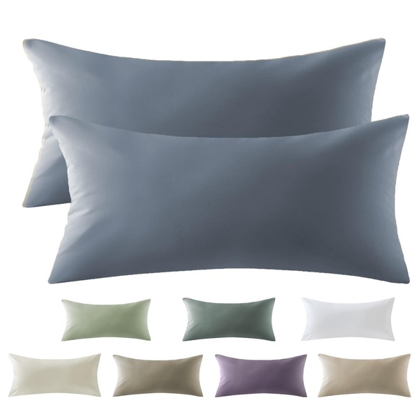 SOULFUL Satin Cushion Cover 40 x 80 cm, Cotton, Pillowcases 2-Piece with Zip, Oeko-Tex Certified, Soft and Comfortable, Ashley Blue