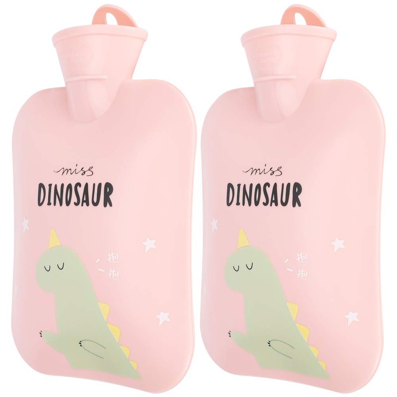 SOULONG 2Pcs Small Portable Hot Water Bag Cute Cartoon Hot Water Boule for Kids and Adults to Keep Warm in Winter 25 X 16 X 3.5cm Pink Dinosaur
