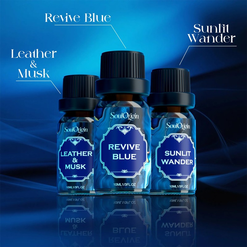 Soulorigin Cologne Fragrance Oils Set, Essential Oil for Diffuser, Men Scent Diffuser Oil, Use for Soap Candle Making, Cologne, Leather&Musk, Revive Blue, Sunlit Wander, Gentleman's Blend, Night Code