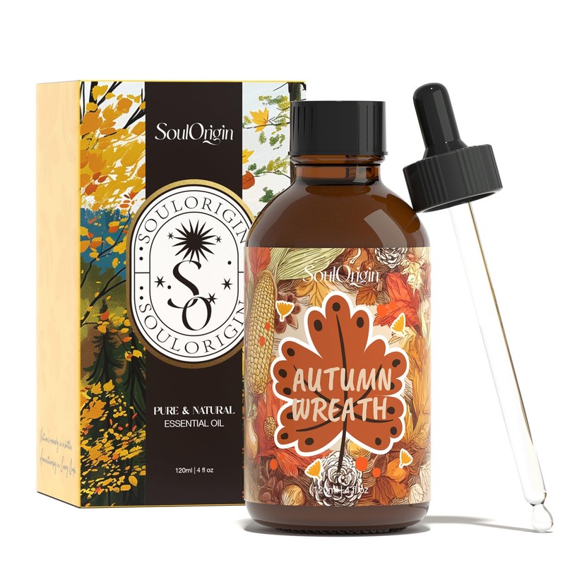 SoulOrigin SoulOrigin Autumn Wreath Essential Oil 120ml (4 Fl Oz), Cozy Fall Fragrance Oils for Essential Oil Diffuser, Natural Autumn Scented Oils for Candle Making, Gifts for Women