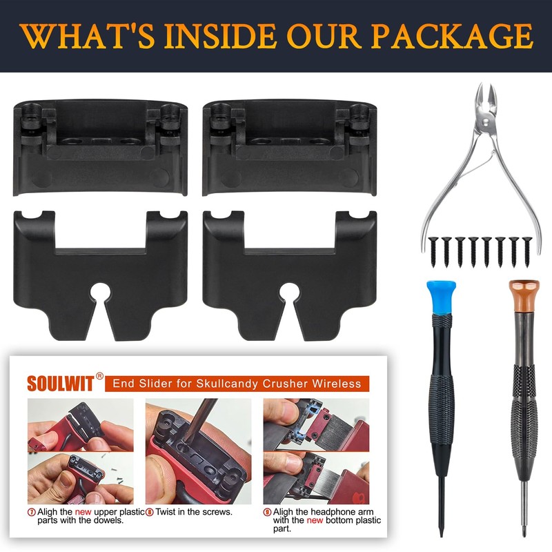SOULWIT Headband Side Cover Slider for Skullcandy Crusher Wireless Headphones, End Caps Replacement Repair Kit Accessories - Black