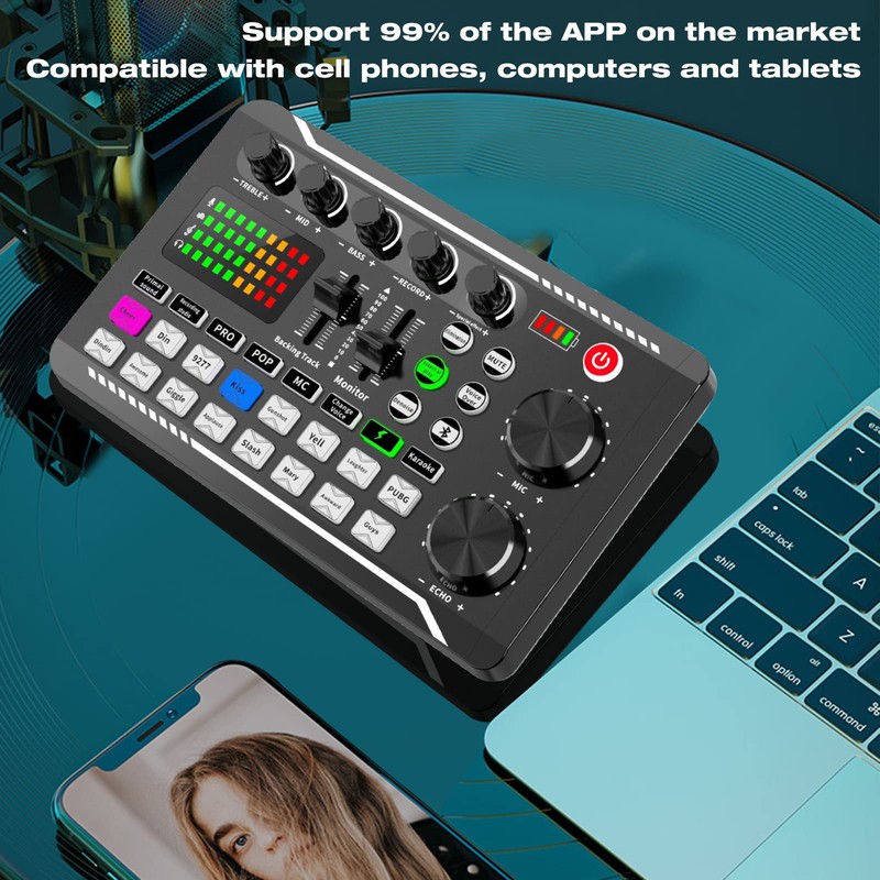 5. PERSONALIZED ELECTRONIC TUNING: Sound mixer has personalized electronic tuning to choose the beautiful sound that suits you, so you can make highs and lows during the live broadcast. The higher the treble, the sharper the sound, the higher the bass, the clearer the sound.