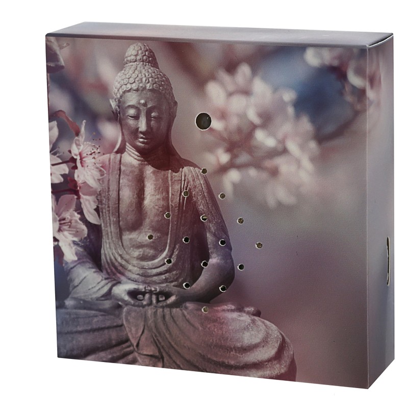 The natural sounds of the soundboxes with built-in motion sensor and four different sounds create a soothing sound backdrop that lets us relax intuitively. You feel fresher, motivated and serene and that makes you friendly and happy. Each soundbox in its individual design offers unique sounds: bird singing and forest backdrop: let the gentle chirping of birds and the sound of the leaves take you into a quiet forest. Wave noise and seagull singing: feel the calming effect of the sea with the sound of the waves and the call of seagulls. Meditation Sound Two different meditation sounds specially designed to help you relax and find your inner peace. The sound box can be placed anywhere and is activated by a motion sensor. With the small wheel on the side, the volume can be optimally adjusted.