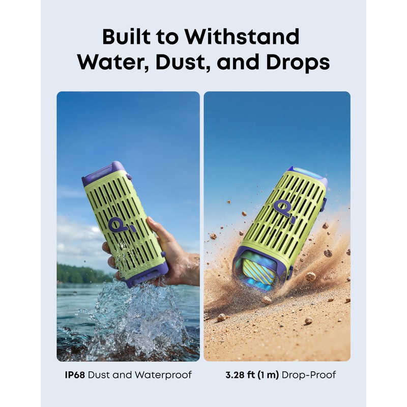 - IP68 Waterproof and Dustproof: Built to survive the elements, this bluetooth speaker is fully waterproof and dust-tight. The ultimate outdoor speaker.