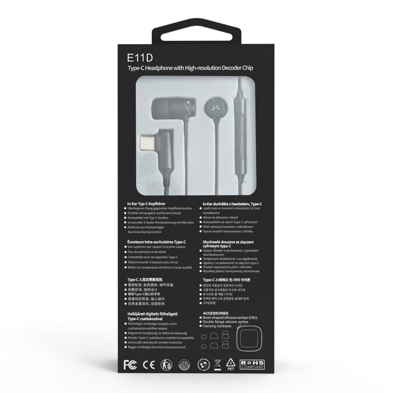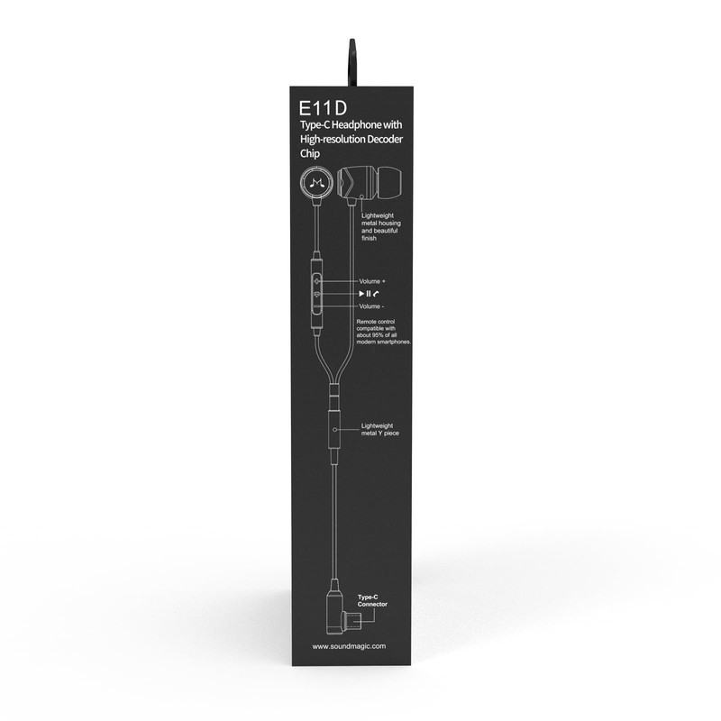 SoundMAGIC E11D USB-C In Ear Stereo Headphones with 10mm Drivers Metal Housing L Shape Plug Inline Controller HiFi Sound Black