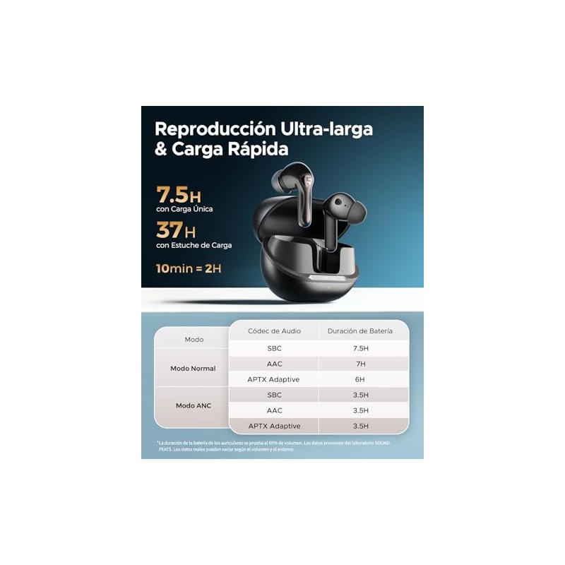 SoundPEATS Air5 Pro Audífonos Inalámbricos Cancelación Activa de Ruido Híbrida Qualcomm® QCC3091 Snapdragon™ Sound aptX Lossless Hi-Res Audio con LDAC 6 Micrófonos CVC 8.0 37H IPX5 App Bluetooth 5.4